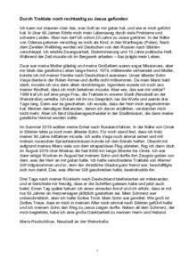 Ich kann nur staunen über das, was Gott an mir getan hat, und wie er mich geführt hat. In über 90 Jahren führte mich mein Lebensweg durch viele Probleme und schwere Leiden. Aber nun darf ich schon 20 Jahre zu Jesus gehören. In der Nähe von Odessa geboren verschlug es mich als Kind, in den Warthegau (Polen). Nach dem Zweiten Weltkrieg wurden wir Deutschen von den Russen nach Sibirien verschleppt. Ich erlebte Zwangsarbeit, Diskriminierung und 10 Jahre politische Haft. Während der Zeit musste ich im Bergwerk arbeiten – das prägte mein Leben.