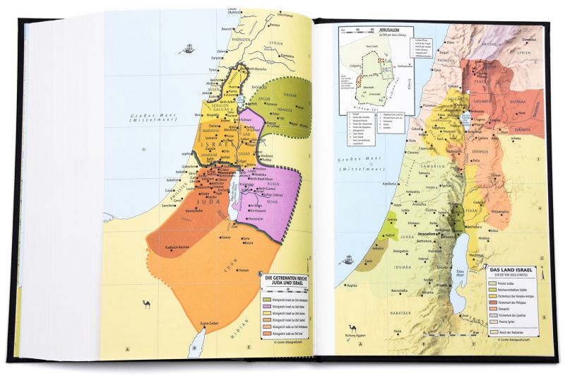 Zahlreiche Erklärungen biblischer Wörter in Fußnoten sowie ein ausführlicher Anhang mit Sach- und Worterklärungen, Übersichtstabellen und farbige Karten bieten Hilfen für den Bibelleser.
