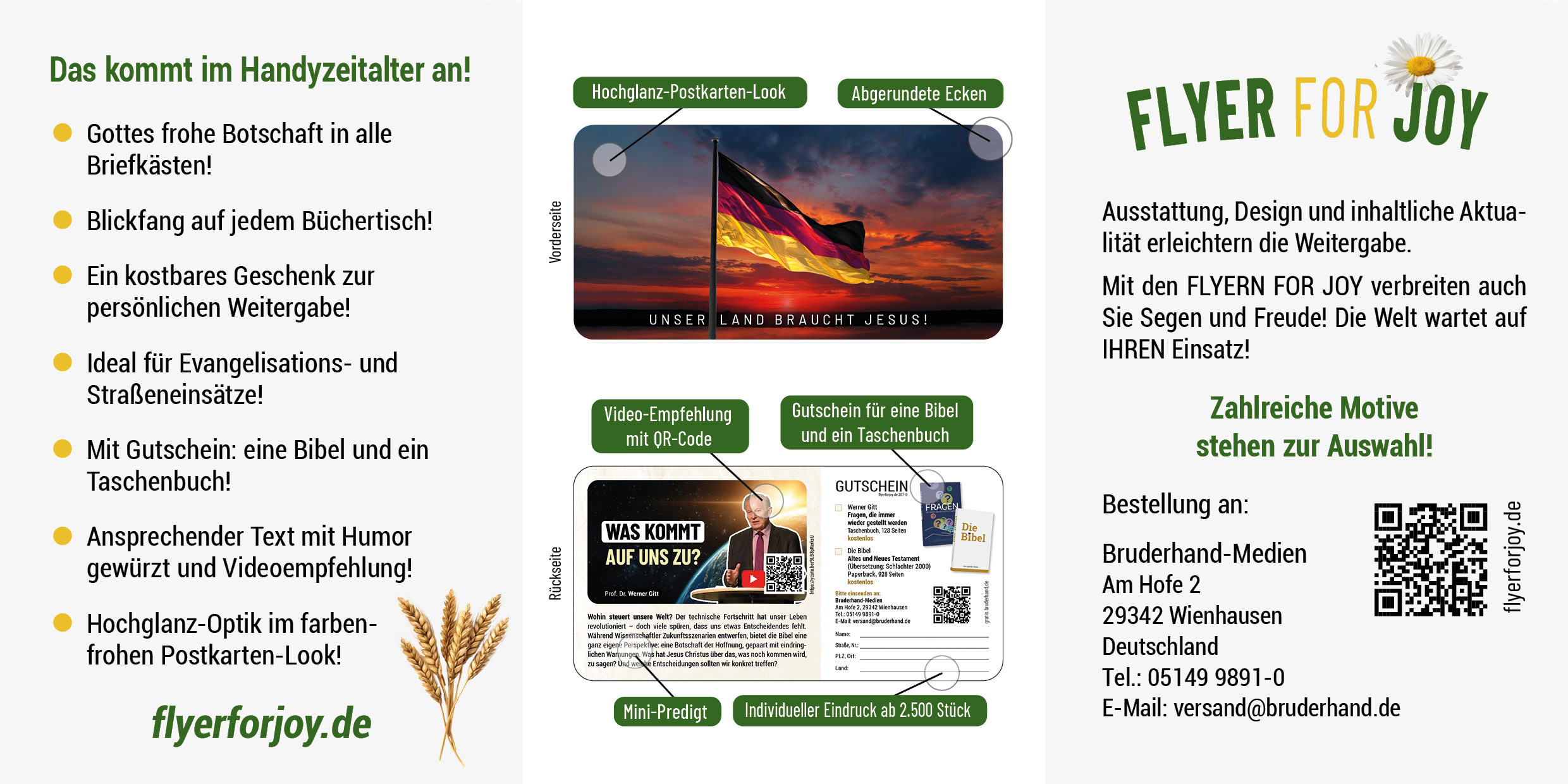 Probieren Sie es aus! Mit den FLYERN FOR JOY verbreiten Sie Segen und Freude! Die Welt wartet auf IHREN Einsatz!