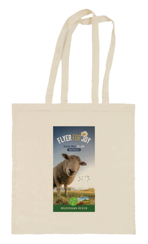 Eine Baumwolltasche mit dem Aufdruck "Flyer for Joy" auf der Vorderseite, die sowohl für evangelistische Einsätze als auch für den alltäglichen Gebrauch geeignet ist. Tragen auch Sie mit dieser Tasche dazu bei, diese Aktion bekanntzumachen.