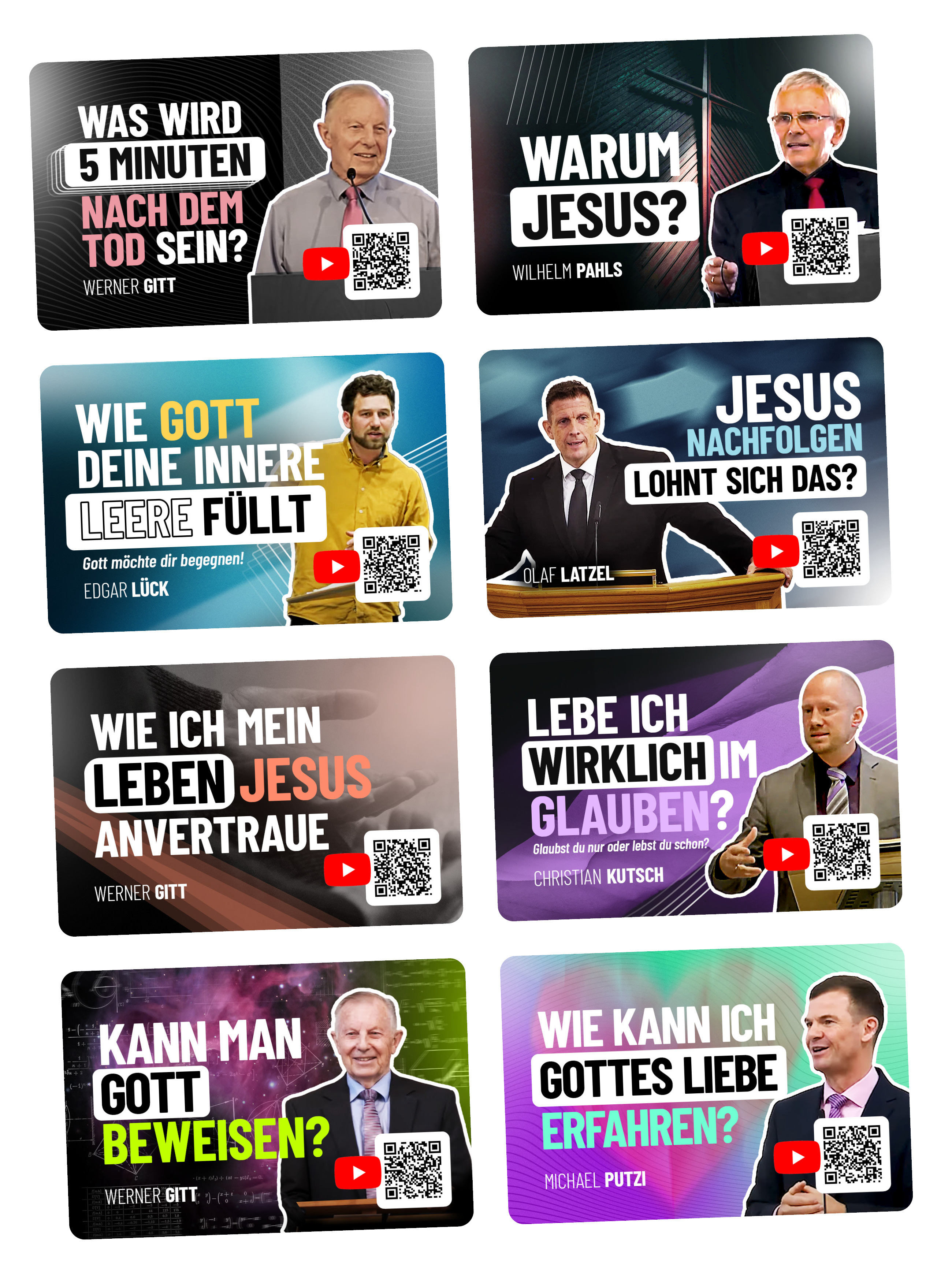 Verschenken Sie mit jeder Karte einen Gutschein für eine Bibel und für das Taschenbuch "Fragen, die immer wieder gestellt werden" von Werner Gitt